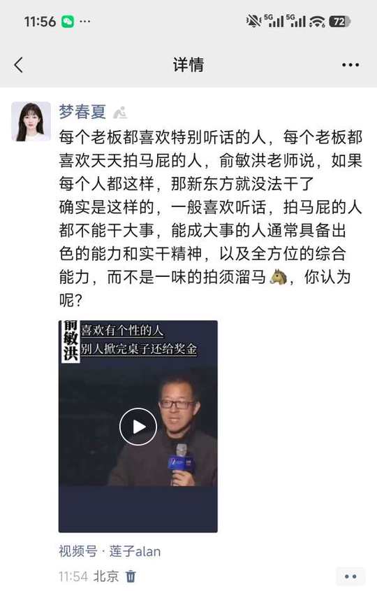 春夏应该到新东方去工作[呲牙],俞敏洪老师说,很多老板不愿意用有个性的人,而他却偏偏喜欢特别有个性的人,那么春夏就是一个特别有个性的人,敢和老板拍桌子,还希望老板发奖金的人[坏笑]