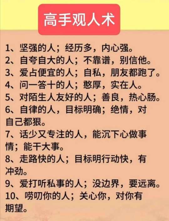 人和人之间的交往,无时无刻都是在进行博弈,一旦你散发出弱者气息,就很容易被对方捏住软肋。为什么初生牛犊不怕虎?因为它压根儿心中就没有恐惧这一说,或者说,它没有把自己放在一个恐惧的环境之中。与人博弈取胜的关键,从来不是对方有多强,而是你能否敢于直视对方的眼睛。无论是王侯将相还是普通百姓,一旦戴上恐惧的枷锁,就只能任人宰割。恐惧是这世上最摧折人心的一种情绪,人一旦被它所操控,就会丧失主导权,丢失自我的主体性。《孙子兵法》上说:逆,不惶馁;危,不惊惧;胸有惊雷而面如平湖者,可拜上将军。永远不要害怕任何人,搞不好他们也在害怕你,只是没表现在脸上而已。