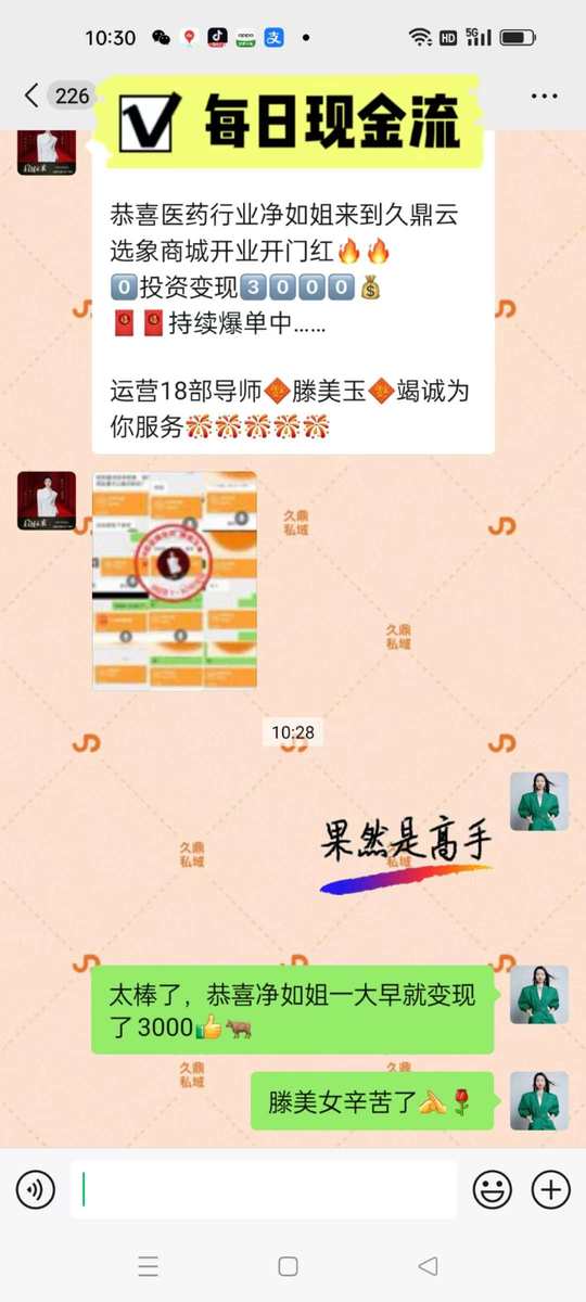 一开始我也根本不敢相信这个事业那么挣米,加入久鼎以后没想到是我认知太低了,破圈才发现这里挣月百万太多了,选择大于努力
