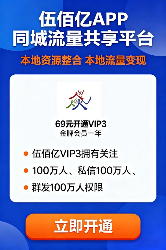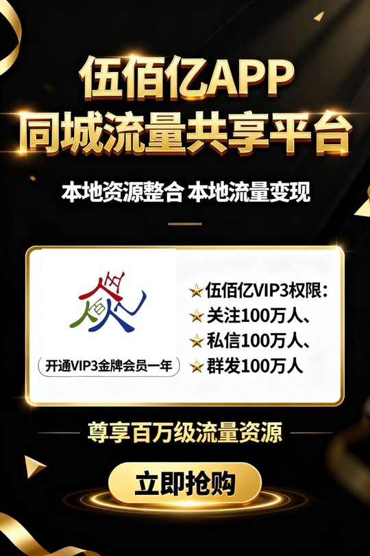 用《伍佰亿》APP盘活私域,侧重采集同城流量,核心是用好它的开放流量特性,结合主动引流、被动引流等方式把平台共享流量转化为自己的私域,具体方法如下:私信回复666领取