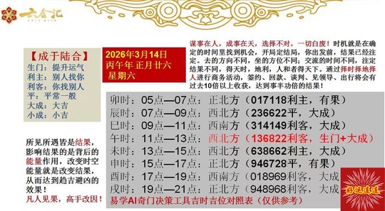 3月14日|六🈴AI奇门吉时指南