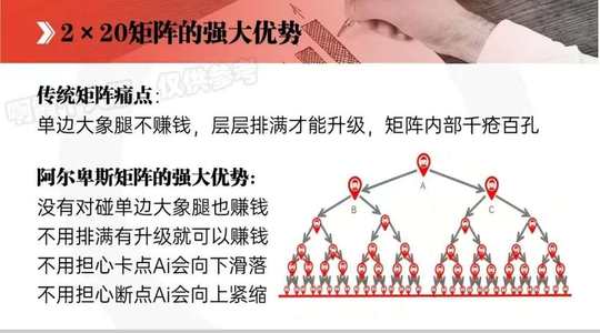 2×20矩阵《排队系统,先来先占位》自动向下滑落,智能向上紧缩,分享1人解锁5层收益,分享2人解锁20层庞大团队《200w多人》