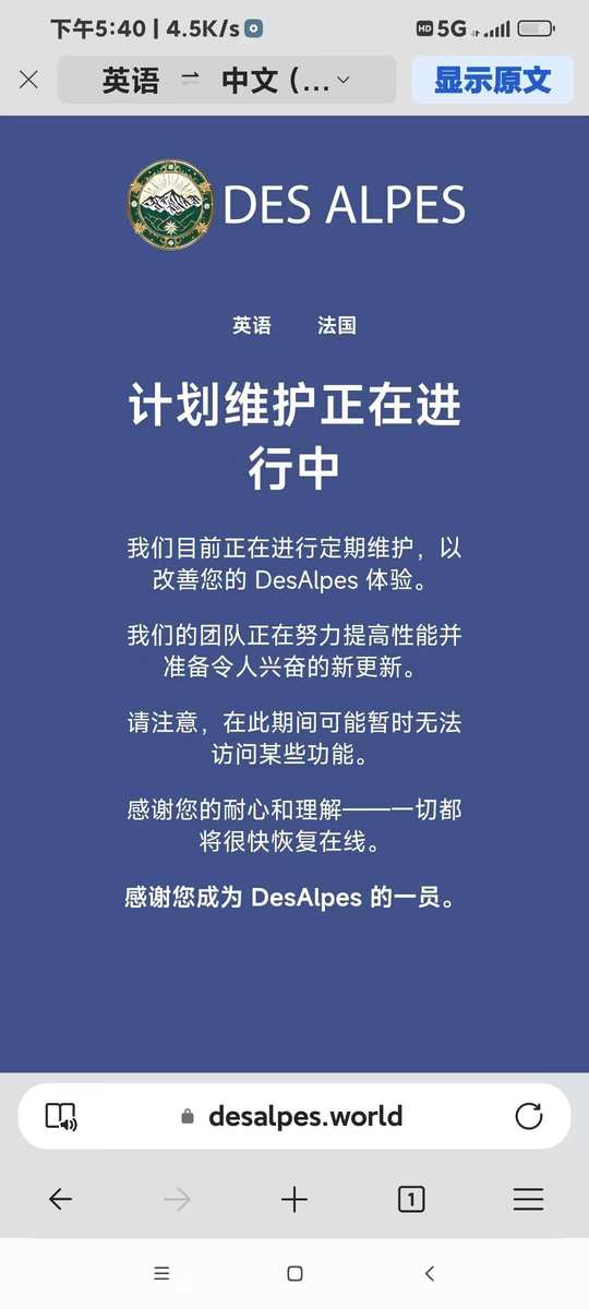 系统暂停服务约4小时,请理合安排作操时间。感谢您对DesAlpes平台升级的耐心待等与持续支持。