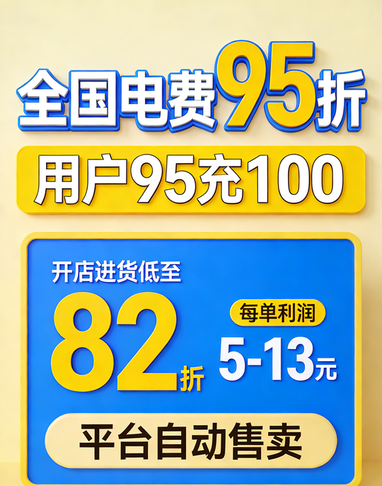 - 话费低至7.8折,电费低至8.2折