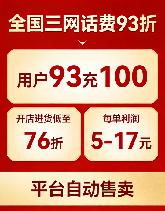 ⭕话费:用户9.3折,店长8.8-7.8折【每单利润5~15元】