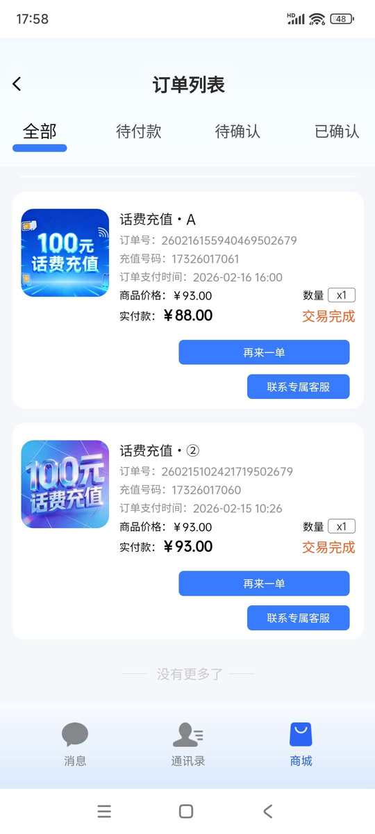 ⭕话费:用户9.3折,店长8.8-7.8折【每单利润5~13元】