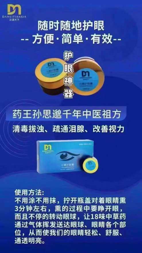 🎉🎉大家好:很高兴能认识大家,我叫睿通,来自甘肃酒泉,现在在分享一款达渼冷熏护眼膏,是祖传秘方第49代传人,药王孙思邈千年秘方,全国招代理,希望我们一起合作,共同实现健康财富双丰收。并帮肋更多更多的人实現健康财富双丰收[呲牙][呲牙]❤️