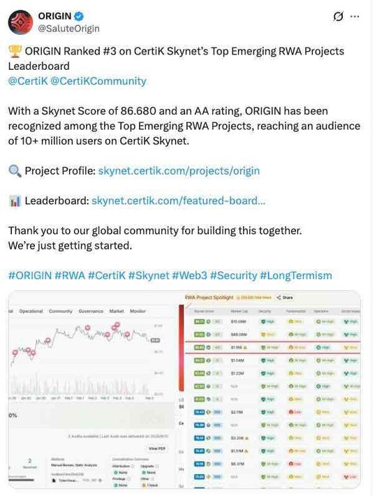 🎉 ORIGIN 荣登 CertiK Skynet 新兴 RWA 项目榜单 TOP 3! 🏆