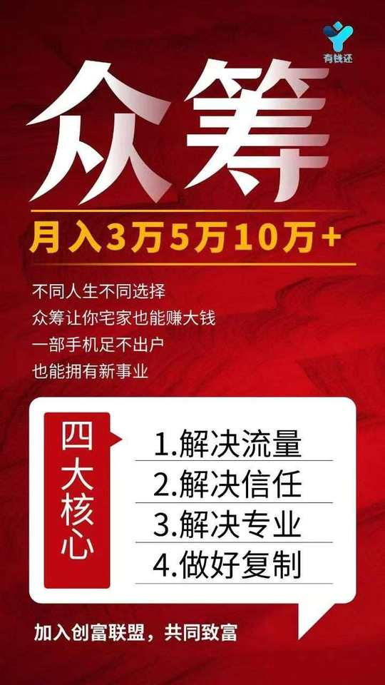 通俗的讲 :就是你有100万的资金缺口,自己解决不了,就来众筹联盟抱团取暖,大家帮你解决!