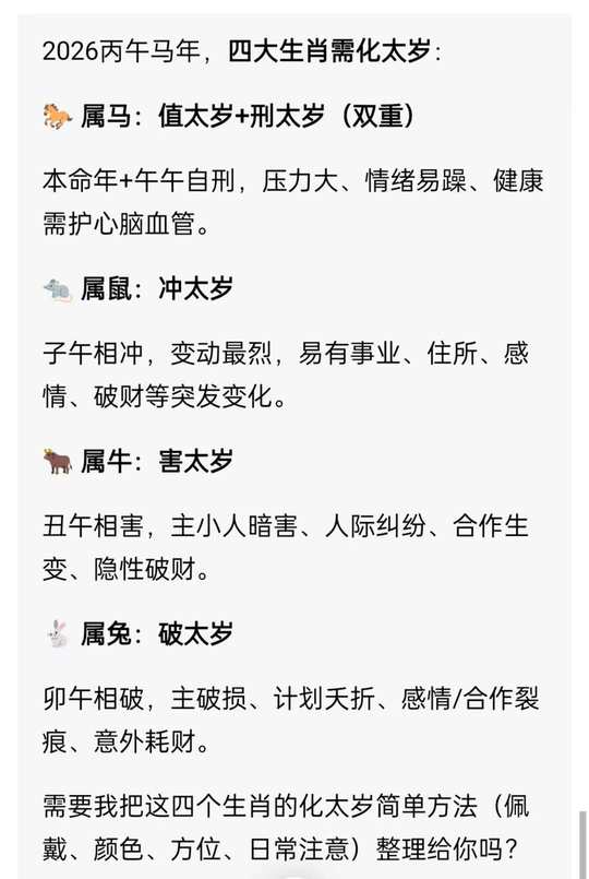 2026干支纪年是丙午,太岁方是南方并临五黄,肖鼠,牛,兔,马者可带吉祥物,有需要的进来看#微信小店带货橱窗://城市寻道者的橱窗/qopfYZjwRmct2ut