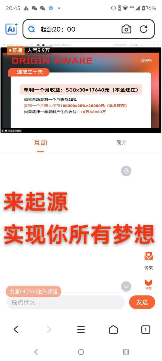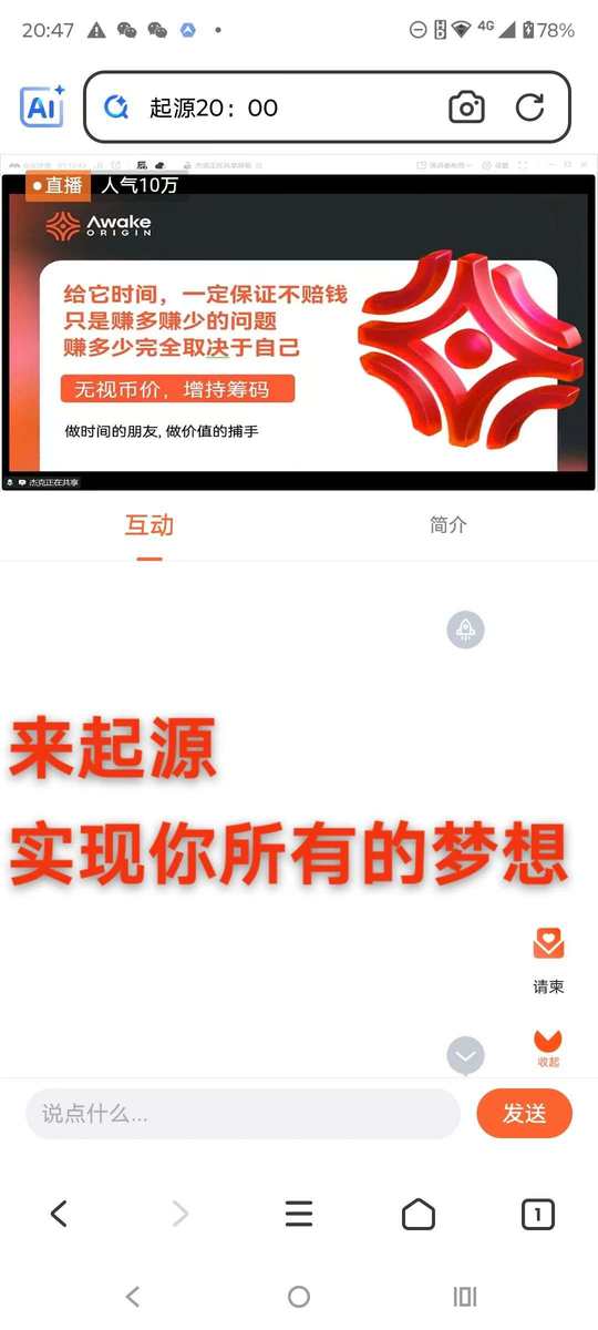 复制会议链接在浏览器中打开,直接进入ORIGIN觉醒直播间,感受向上的力量
