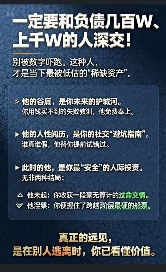 一个人口袋里的Q,是脑袋里认知的变现,跟这些高认知的人相处,在你耳濡目染之间,洞穿事物本质,迅速完成进阶,你人生的天花板就会抬高一层💰💰
