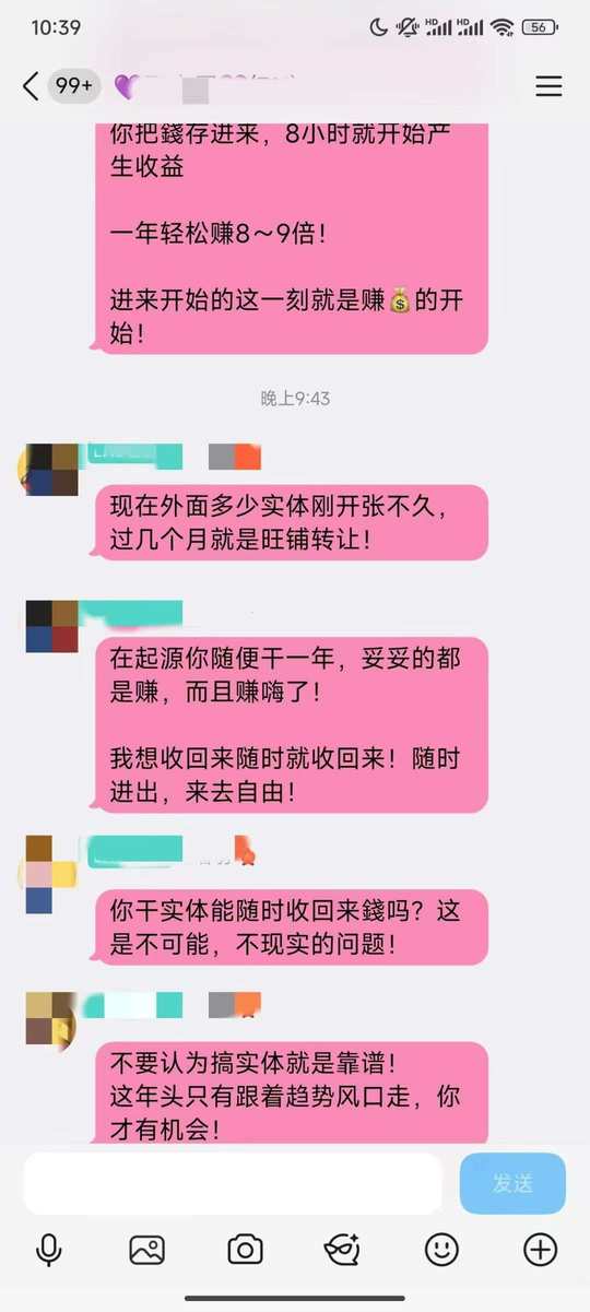 我做的是数字资产,你可以理解为理财,不需要卖货,不需要卖课,自己一个人也可以赚Q,在这里是Q赚Q,而不是需要靠拉人头推销才有Q