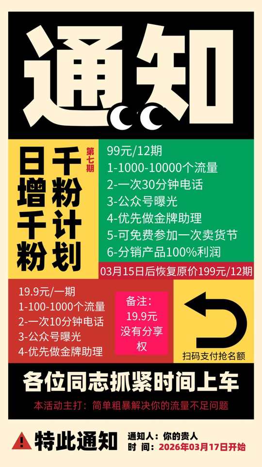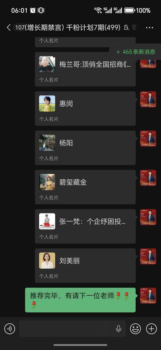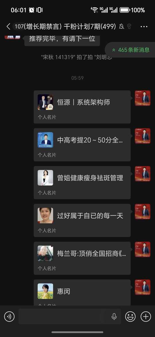 下午好啊,请你添加我的WX,这边有一个活动,千粉计划第7期开始了,每天群里面互推名片,有人主动加你,你每天被动涨粉几十个人,你非常优秀,我想邀请你进群,加下我